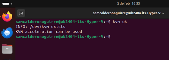 Además, puede verificar si la virtualización KVM está habilitada ejecutando el siguiente comando: