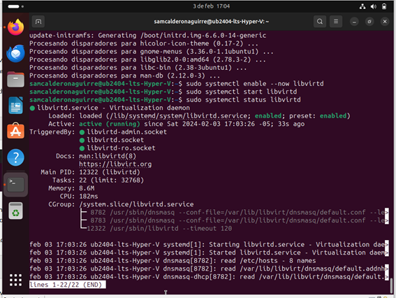 Con todos los paquetes instalados, habilite e inicie el servicio Libvirt.