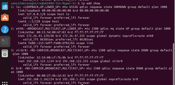 Si planea acceder a máquinas virtuales KVM fuera de su sistema Ubuntu 24.04, debe asignar la interfaz de VM a un puente de red. A través de un puente virtual llamado virbr0, se crea automáticamente cuando se instala KVM pero se utiliza con fines de prueba.