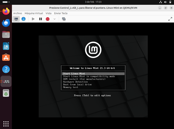 $ sudo usermod -aG libvirt $USERLa variable de entorno $USER apunta al nombre del usuario actualmente conectado. Para aplicar este cambio, debe cerrar sesión y volver a iniciarla.